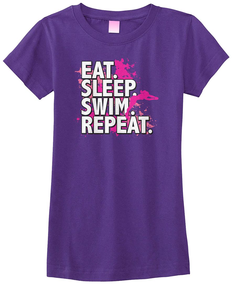 T-shirt Threadrock filles mangent sommeil achats natation répété ajusté slogan sport natation, T-shirt Threadrock filles mangent sommeil natation répété ajusté slogan sport natation magasin